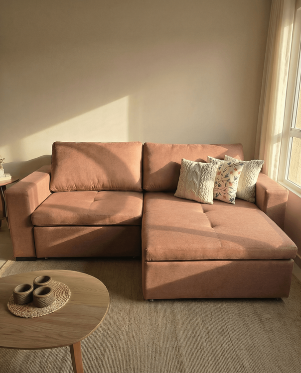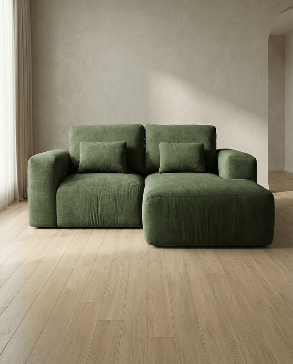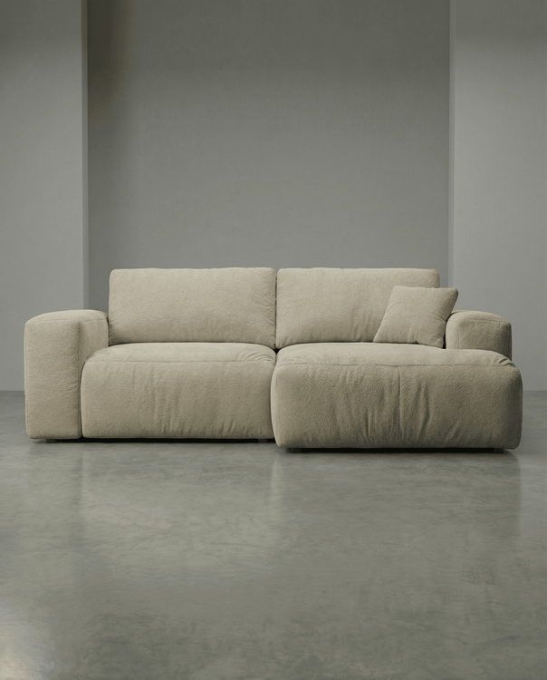 Un diseño versátil que redefine el concepto de amplitud en espacios reducidos. Líneas orgánicas y una chaise lounge que invita al descanso profundo. Sofisticación funcional para tu salón.