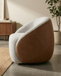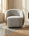 Esta poltrona combina una silueta curva con un tejido lino, creando el rincón perfecto para tus momentos de lectura o café. Su diseño circular aporta una fluidez única que suaviza cualquier rincón de tu hogar.